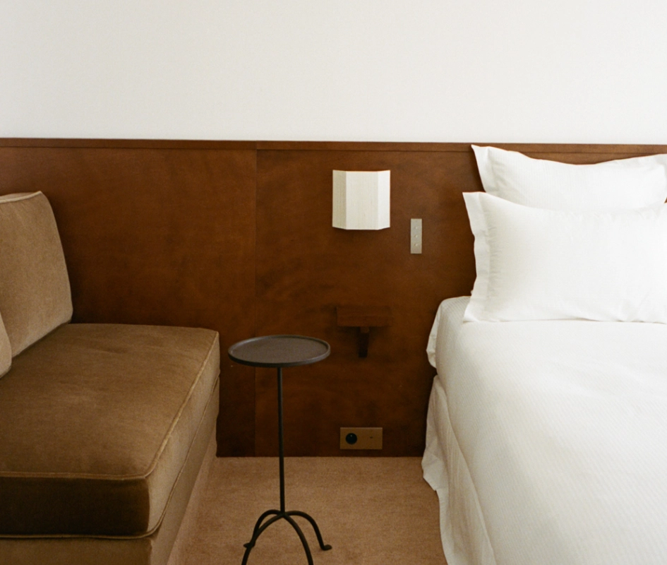 Cette chambre intime de 15m² est conçue pour deux personnes. Elle offre une atmosphère calme et apaisante. Les chambres sont décorées avec du mobilier sur mesure, des pièces vintage et des œuvres d'art éclectiques.